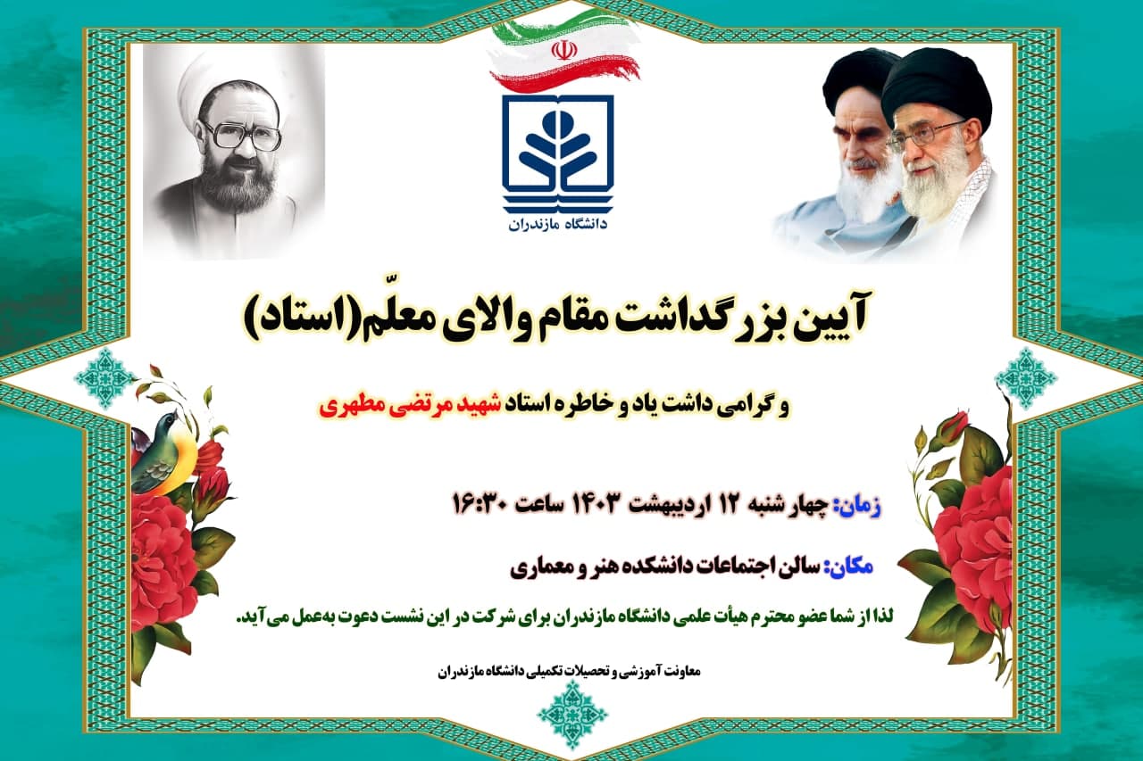 آیین بزرگداشت مقام والای معلم(استاد) و گرامیداشت استاد شهید مطهری - دانشگاه مازندران