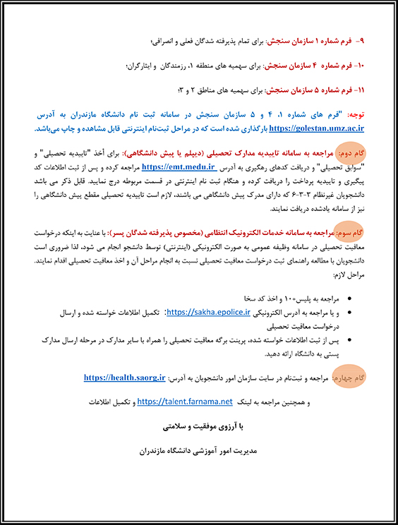 فرم های شماره 1، 4 و5 : https://golestan.umz.ac.ir/home/Default.htm
