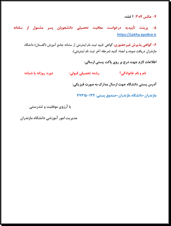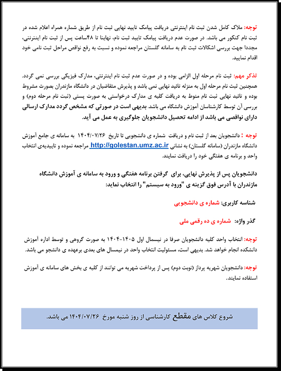 اطلاعیه شماره 3 درخصوص زمان و نحوه ثبت نام پذیرفته شدگان نو ورود سال تحصیلی 1404 دانشگاه مازندران