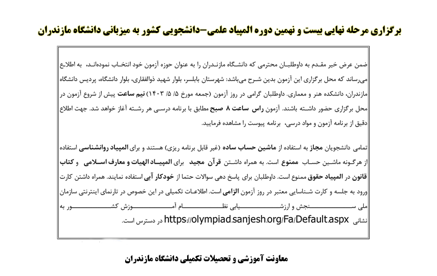 برگزاری مرحله نهایی بیست و نهمین دوره المپیاد علمی-دانشجویی کشور به میزبانی دانشگاه مازندران - دانشگاه مازندران