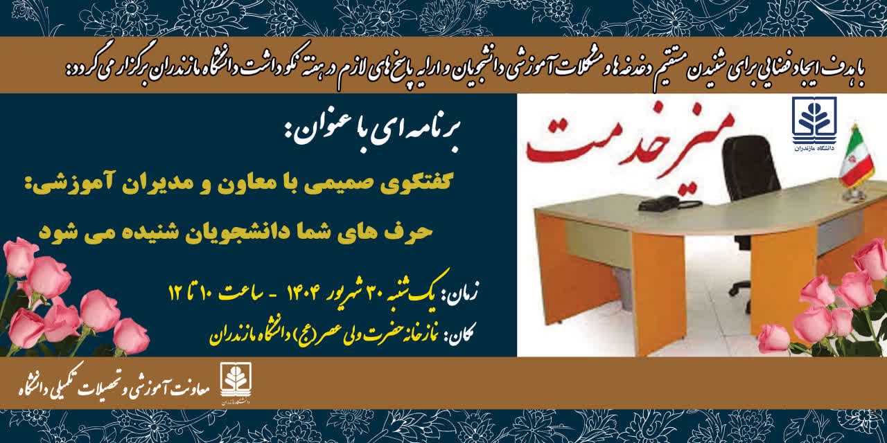 🔺ابتکار معاونت آموزشی دانشگاه برای مشارکت در برنامه های هفته نکوداشت دانشگاه مازندران با دعوت از دانشجویان ارجمند جهت طرح مشکلات آموزشی.
