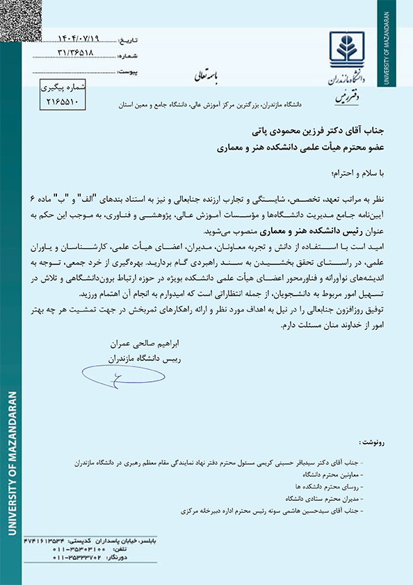 رییس دانشکده هنر و معماری دانشگاه مازندران منصوب شد - دانشگاه مازندران